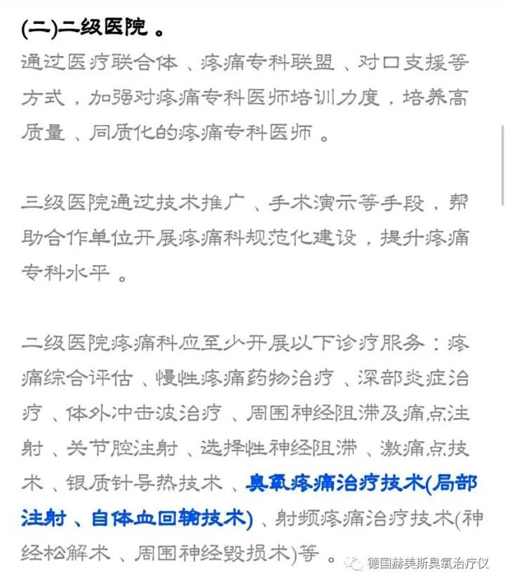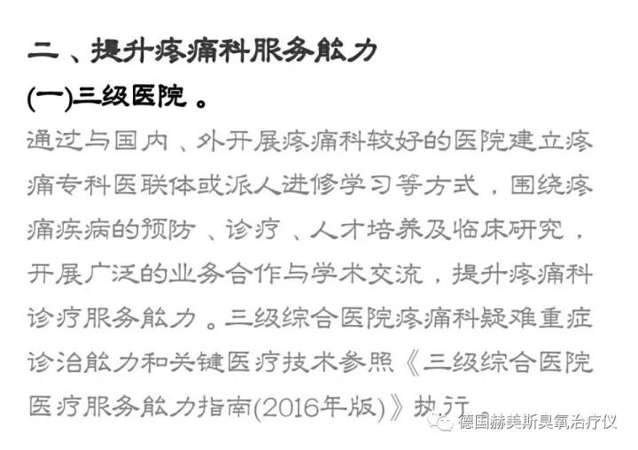 摘:二級醫(yī)院疼痛科應(yīng)至少開展以下診療服務(wù):疼痛綜合評估、慢性疼痛藥物治療、深部炎癥治療、體外沖擊波治療、周圍神經(jīng)阻滯及痛點(diǎn)注射、關(guān)節(jié)腔注射、選擇性神經(jīng)阻滯、激痛點(diǎn)技術(shù)、銀質(zhì)針導(dǎo)熱技術(shù)、臭氧疼痛治療技術(shù)(局部注射、自體血回輸技術(shù))、射頻疼痛治療技術(shù)(神經(jīng)松解術(shù)、周圍神經(jīng)毀損術(shù))等。